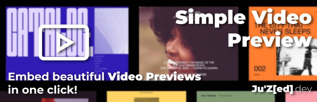 Simple Video Preview est un bloc Gutenberg qui permet d’intégrer facilement des aperçus de vidéos provenant de divers services de vidéos en ligne tels que YouTube, Vimeo, Dailymotion et Wistia. Lorsque les utilisateurs cliquent sur le bouton de lecture, ils sont redirigés vers le service de vidéo pour regarder la vidéo dans un nouvel onglet.